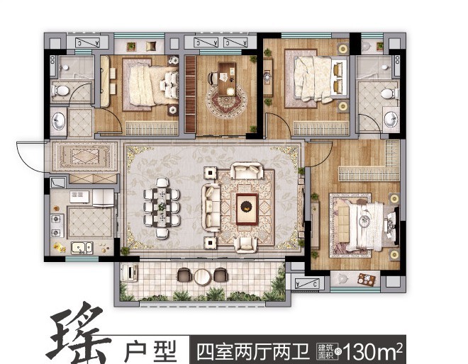 案例名稱 新城 璽樾臺(tái)|現(xiàn)代輕奢 戶型 三居室 案例面積 135㎡