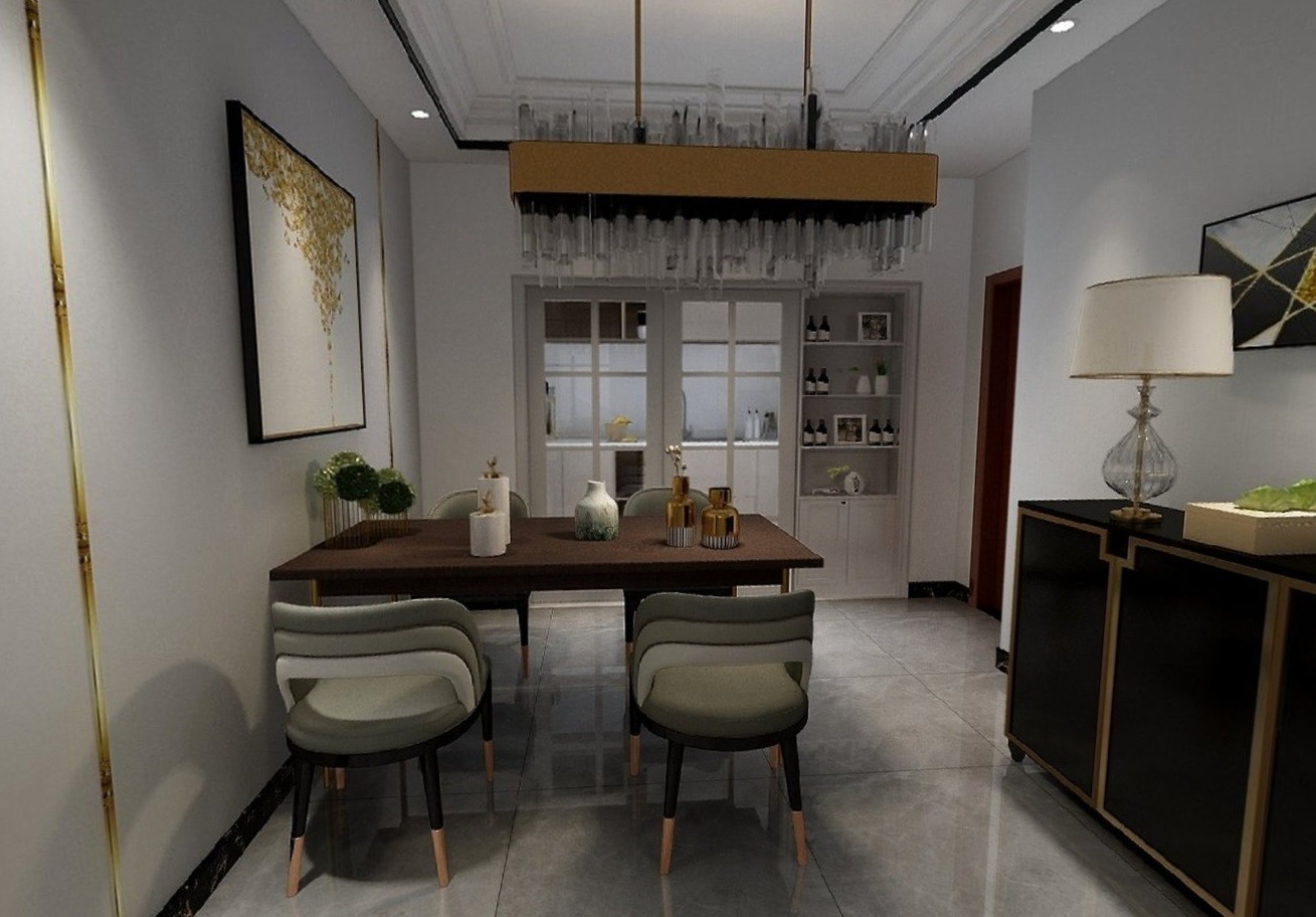 餐廳中,家具的搭配使得空間每一處都大氣時尚。地面以灰色大理石打底,配上棕色酒柜金屬包邊,高品質(zhì)家具呈現(xiàn)個性,裝飾畫凸顯藝術(shù)性、趣味性,與生活的質(zhì)感達到和諧的舒適感。