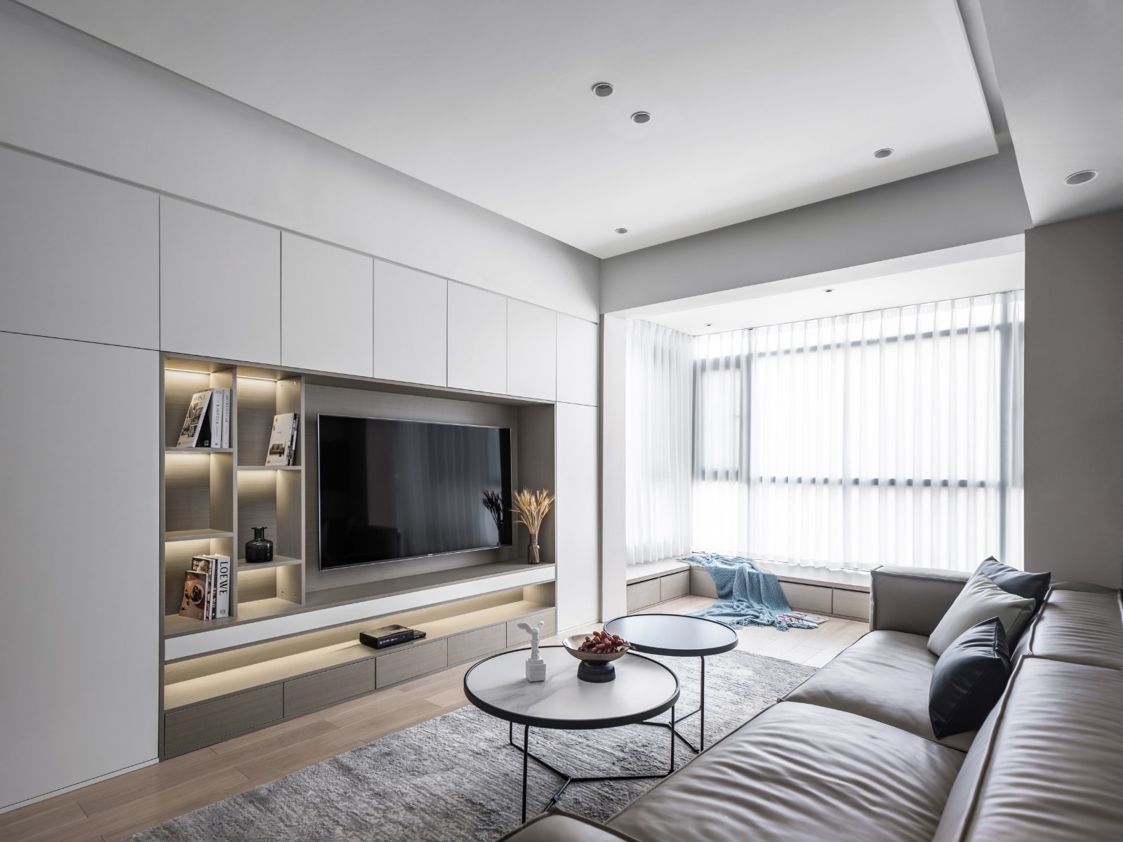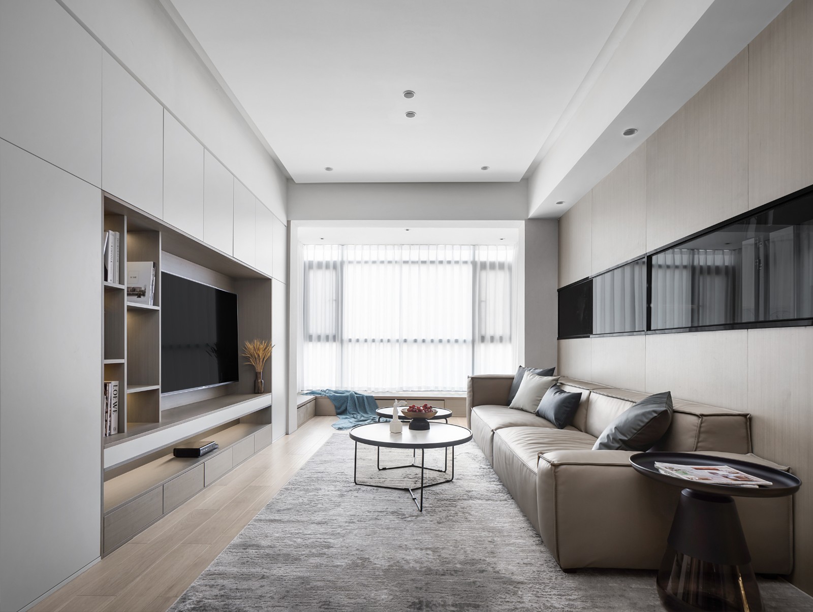 客廳以木色和白色為主調(diào),黑色為點綴,透過不同的材料質(zhì)感及空間體塊,讓空間呈現(xiàn)出別致的層次感,既提升了空間的明亮度,也體現(xiàn)了藝術(shù)審美。