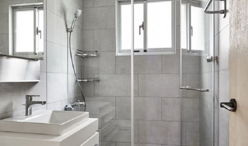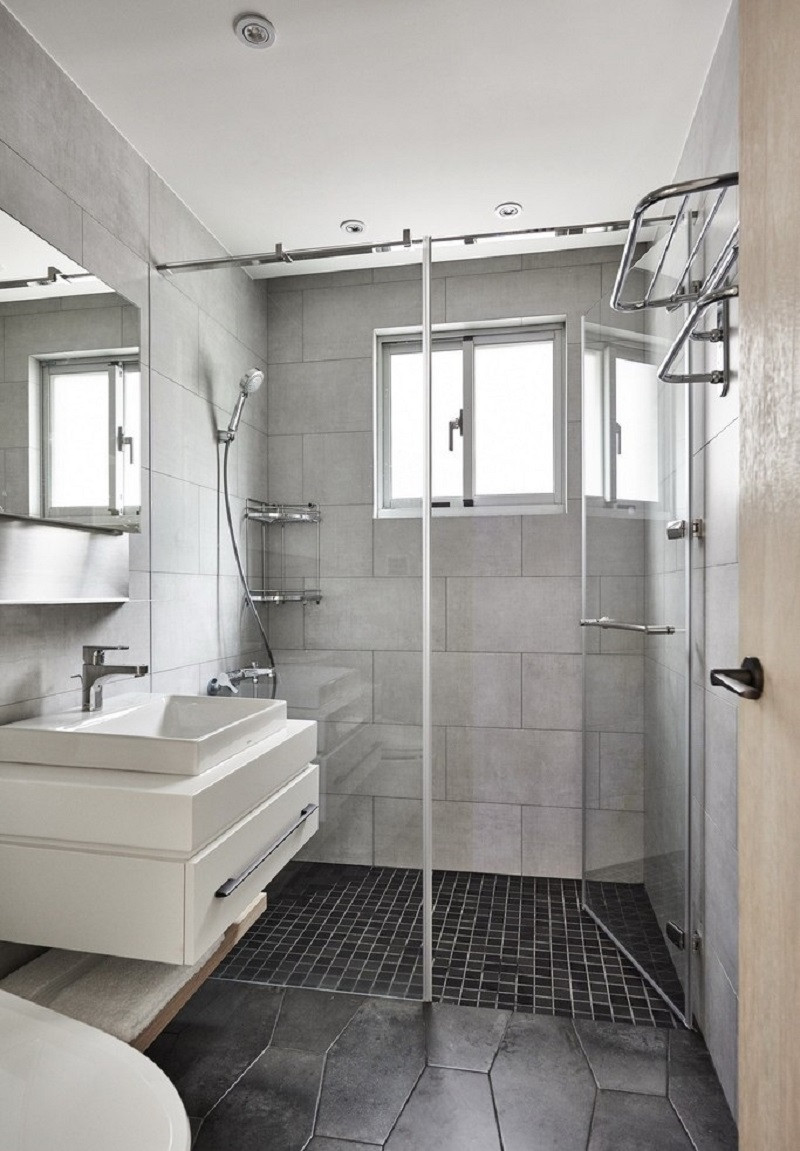 干濕分離的衛(wèi)生間,用的灰色瓷磚也是不用款式的。