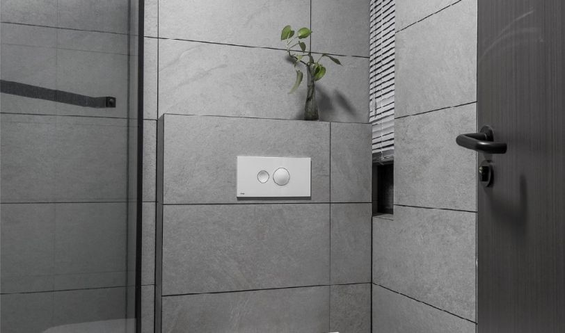 選擇耐臟的墻地磚,美觀又易打掃,用玻璃隔斷淋浴區(qū)和馬桶,干濕分離,設(shè)計(jì)很適用面積不大的衛(wèi)生間。