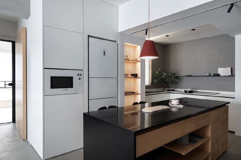 由于兩位都是不常在家做飯的類型,所以在設(shè)計(jì)需求上只要求以美為主,但是對(duì)于我們?cè)O(shè)計(jì)而言很清晰廚房對(duì)于一個(gè)家的氛圍及實(shí)用的重要性,所以在考慮美的同時(shí)還不忘偷偷的把廚房功能做完整。