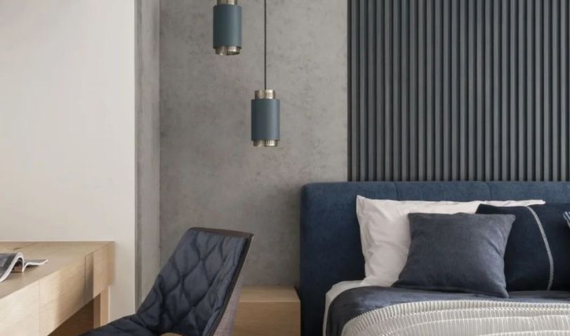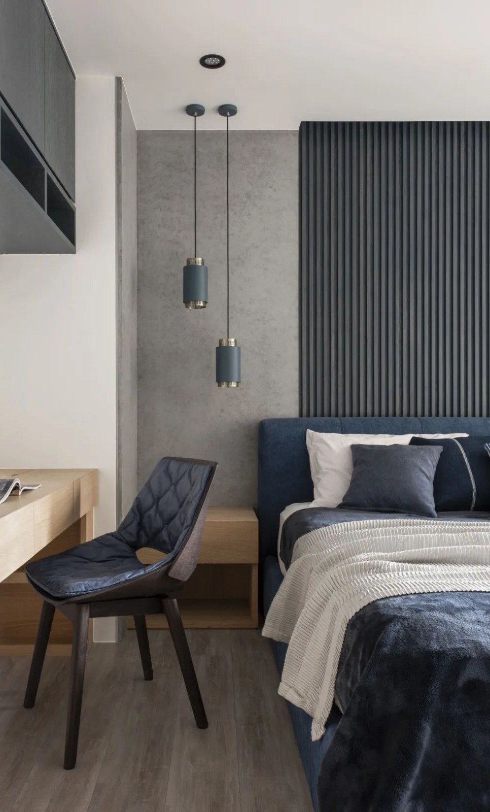與客廳相同色調(diào)的主臥,靜謐的藍(lán)為臥室蒙上一層優(yōu)雅的面紗。
