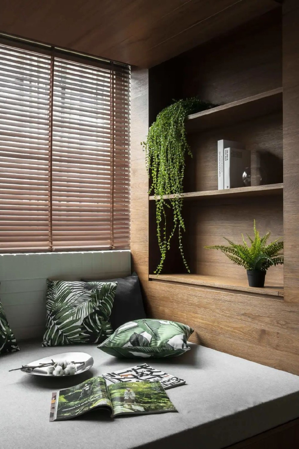 次臥作為多功能房兼具書房與客臥的功能,綠色點(diǎn)綴其中很是自然清新。