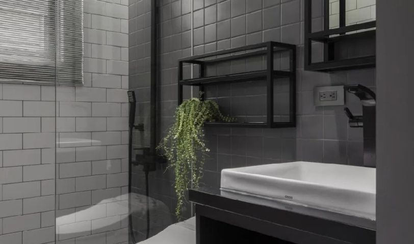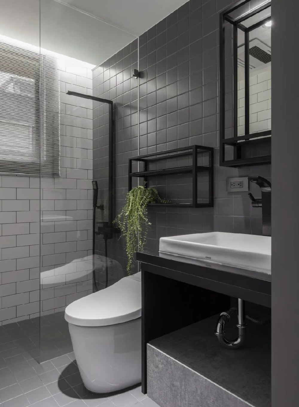 衛(wèi)生間做了干濕分離,黑灰白構(gòu)成了這個(gè)簡約的空間。