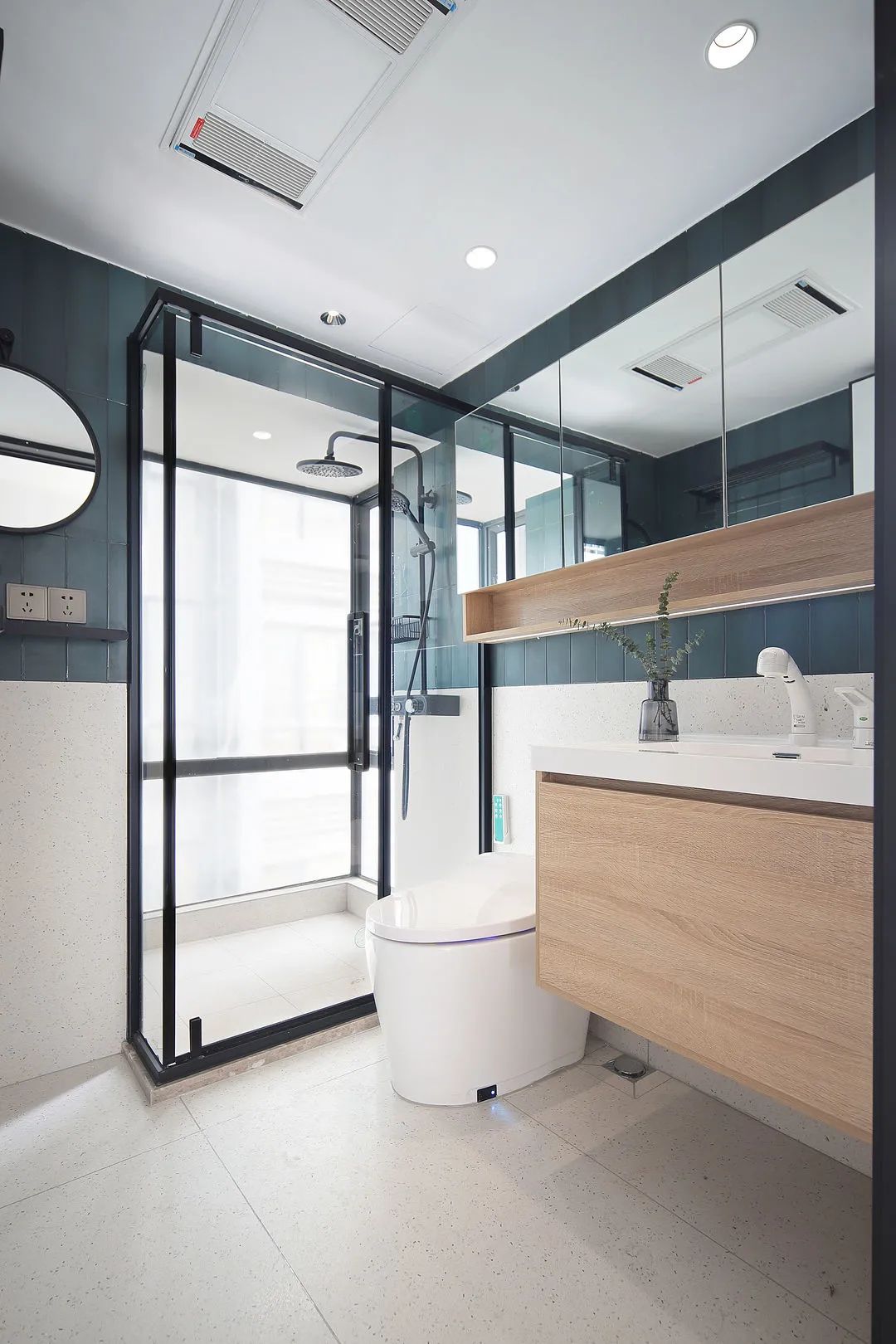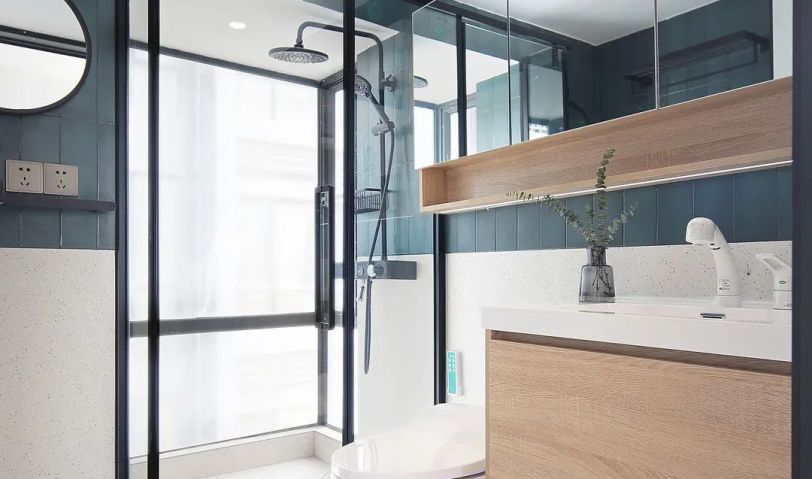 衛(wèi)生間的干凈整潔由長方形的洗手臺構(gòu)成
