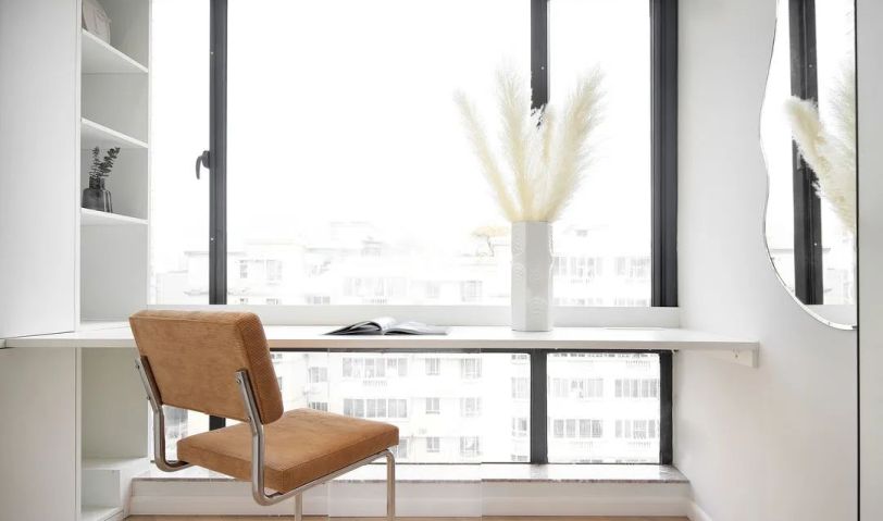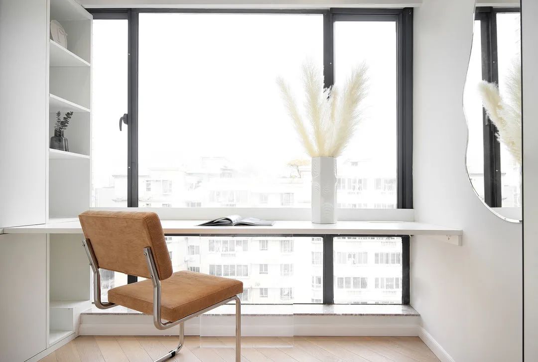 衣帽間兼書房,通透的一大扇落地窗投來自然的光線,讓整個空間顯得更加明亮,一個可以獨處不被打擾的空間。