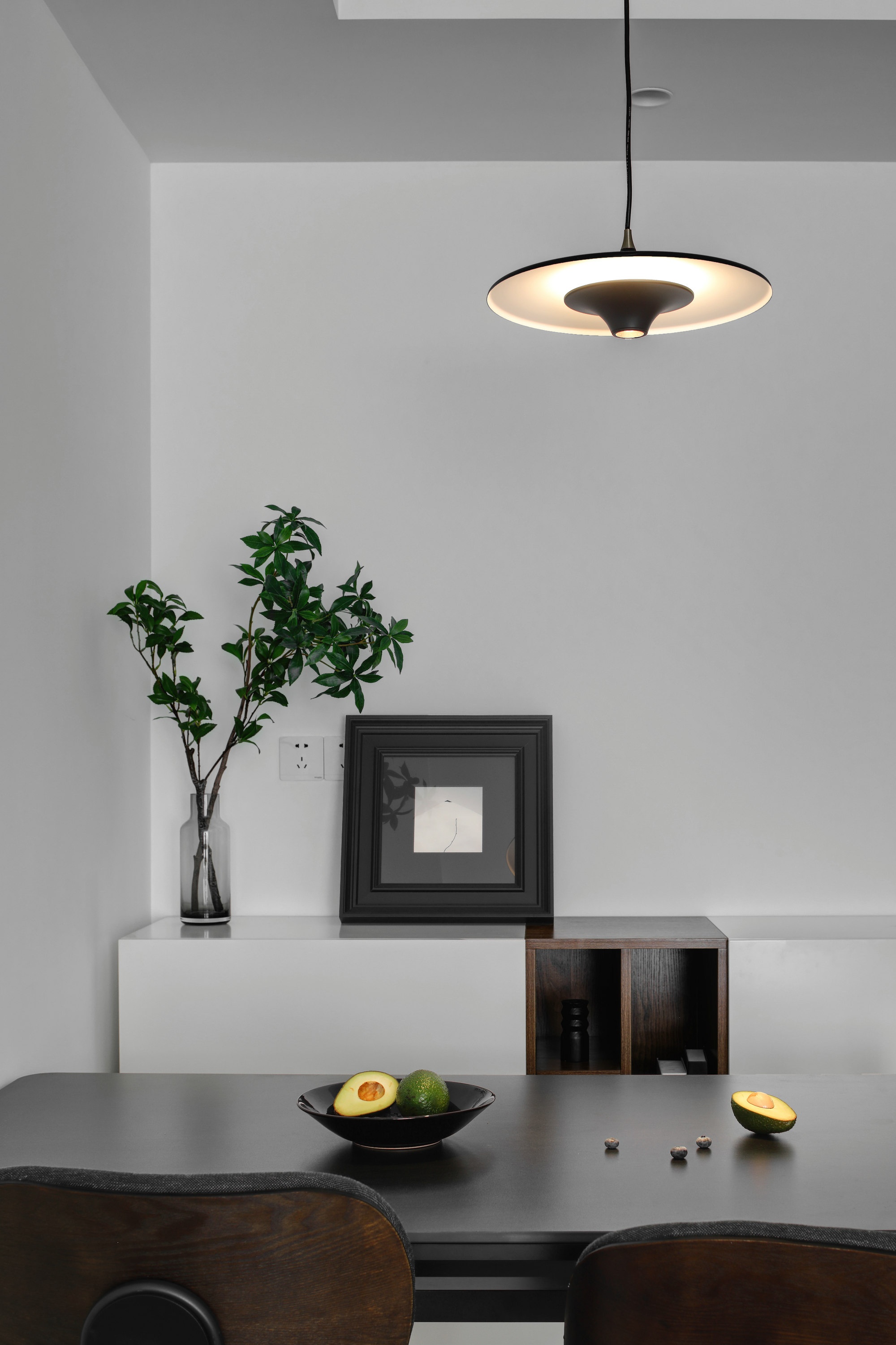 餐廳巖板餐桌,耐磨耐污,餐邊柜滿足一些常用小物的收納。