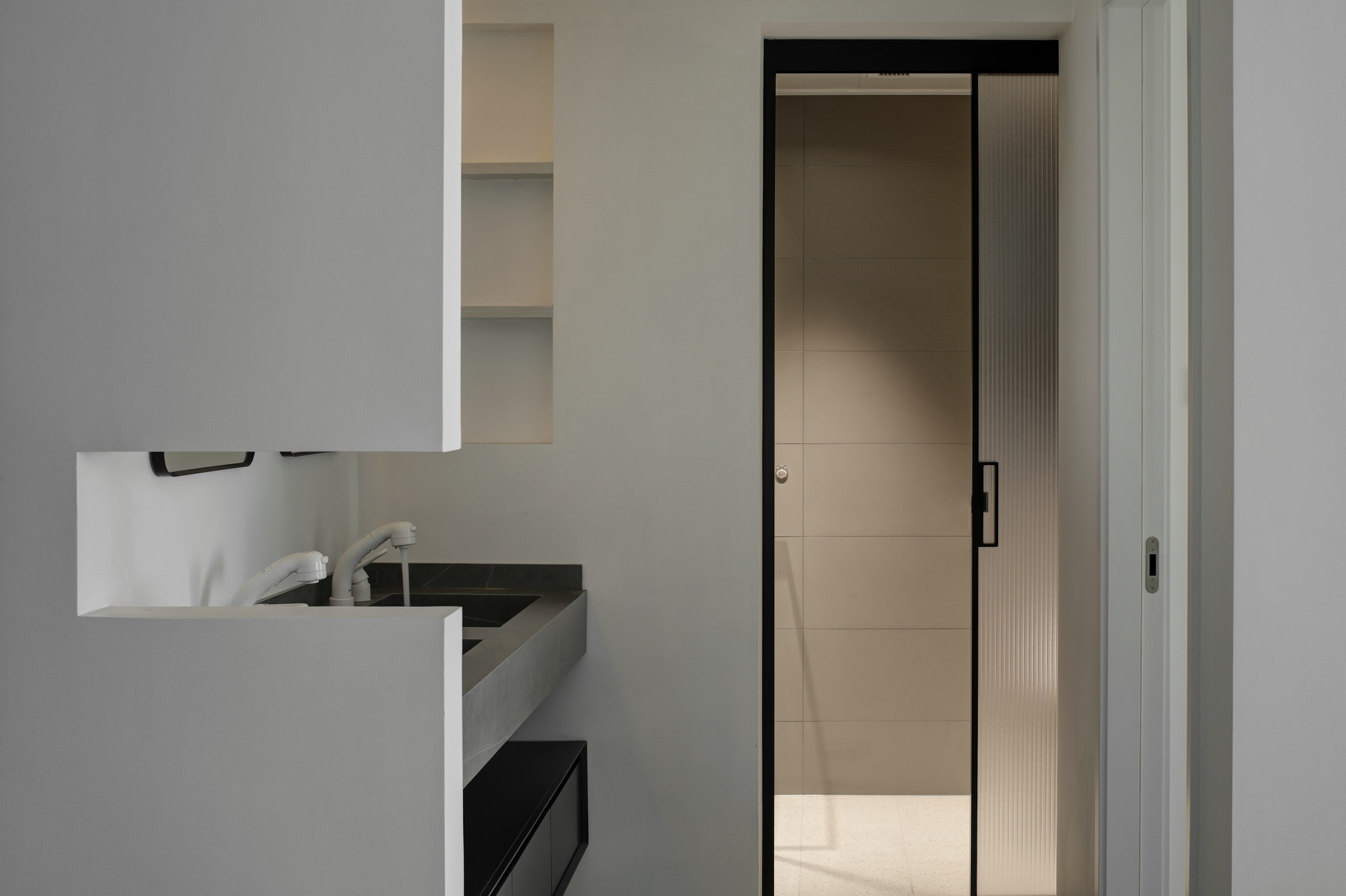 兩個(gè)人住,還有一只貓,原來的結(jié)構(gòu),內(nèi)部有些地方略顯擁擠,不太滿足現(xiàn)在的生活需求。通過改造后,把空間功能區(qū)域化,盡可能的利用墻體的結(jié)構(gòu),比如衛(wèi)生間的淋浴區(qū)、馬桶區(qū)、干區(qū)等,利用墻體的厚度,做不同層次的壁龕收納,解決實(shí)際收納問題同時(shí)又仿佛是結(jié)構(gòu)本身自然生長(zhǎng)出來,女主為他們的新家取名為此去經(jīng)年,寓意一切都是最好的安排。