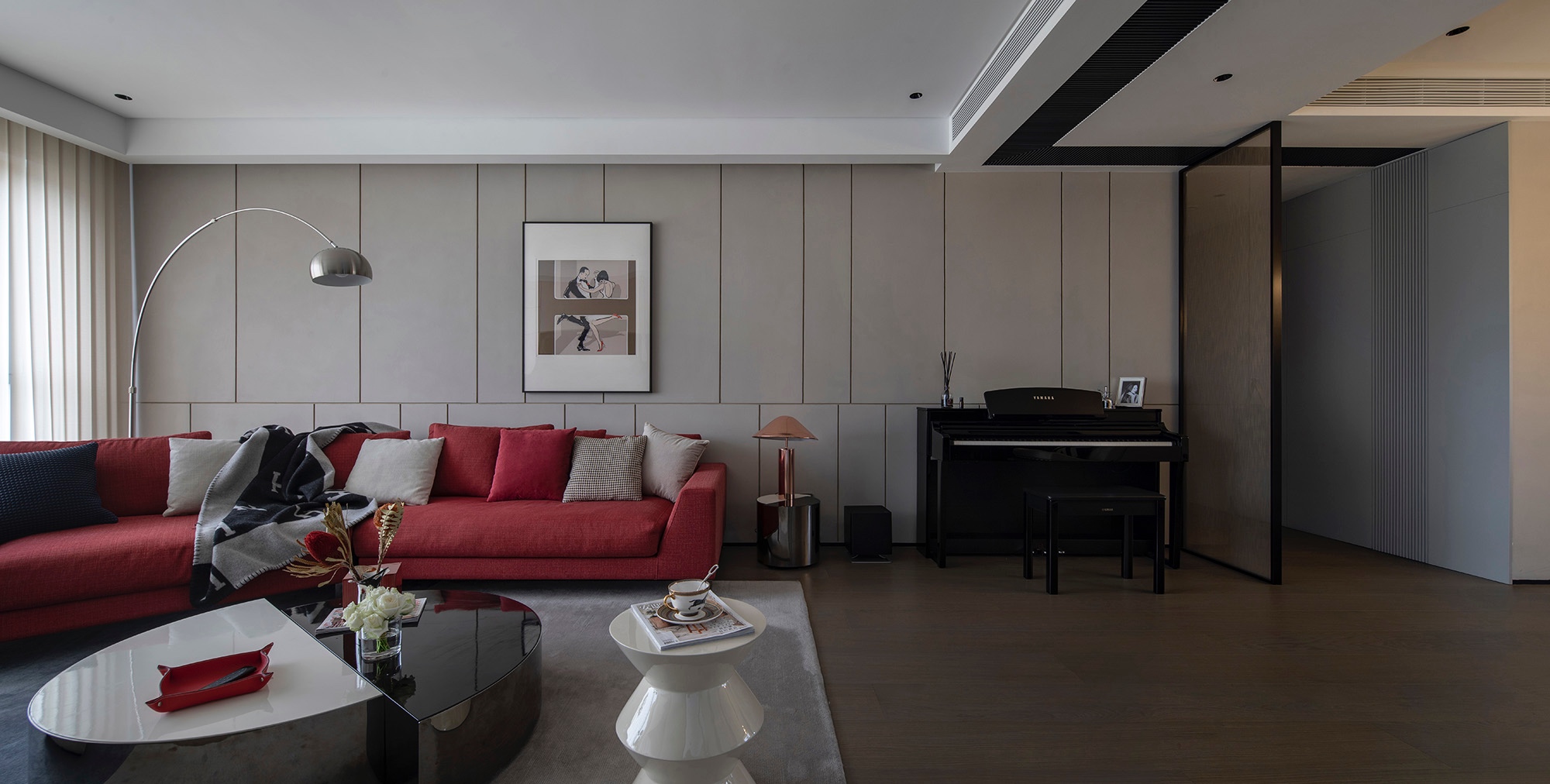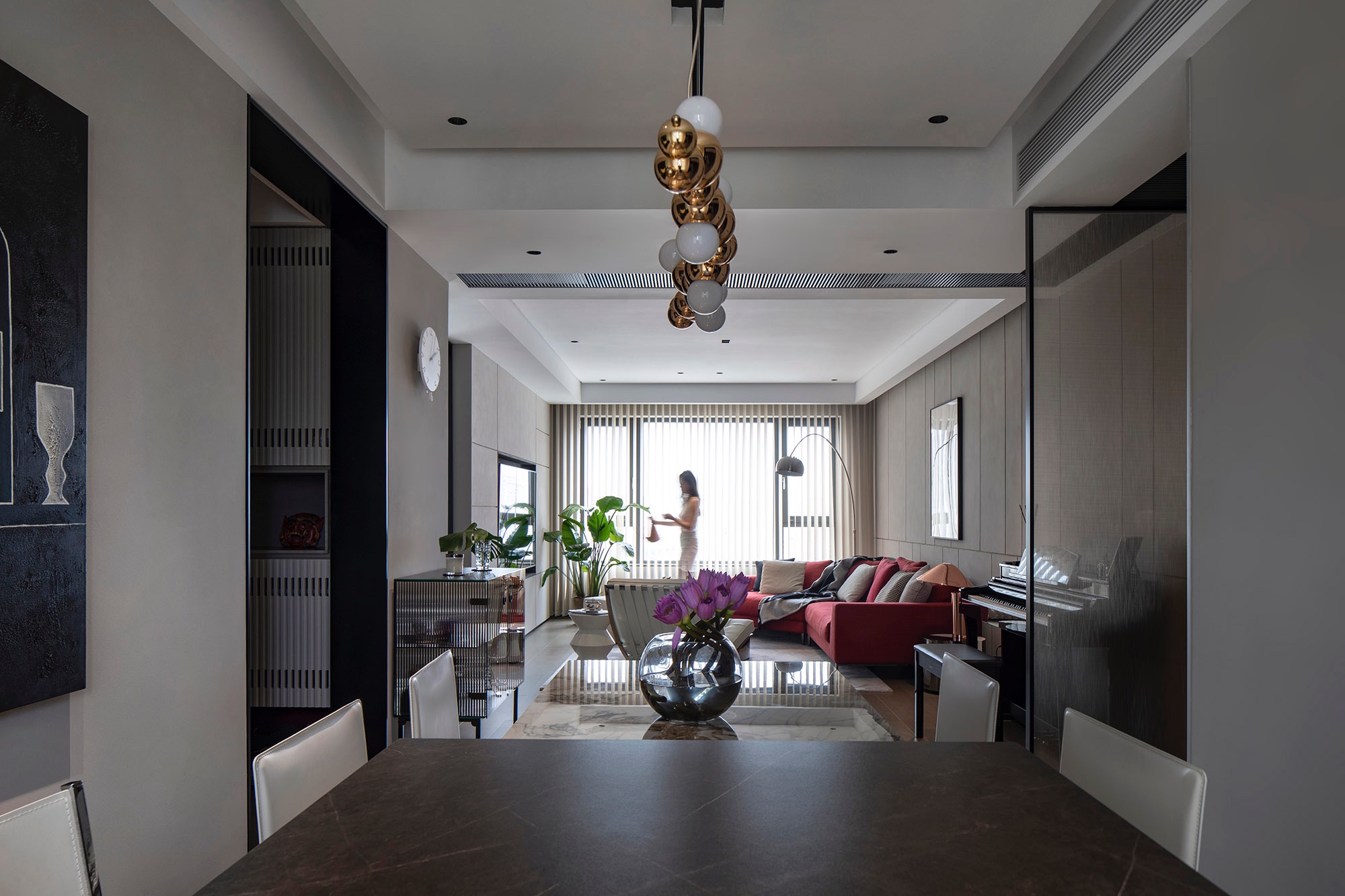 這是一對(duì)青年夫妻的棲居之所,我們合理設(shè)計(jì)了整體空間的動(dòng)線,在材料選擇、顏色搭配以及軟裝設(shè)計(jì)上“頗費(fèi)心思”。確立現(xiàn)代風(fēng)格,大膽拆分結(jié)構(gòu),重塑空間價(jià)值,既串聯(lián)起不同場(chǎng)域的生活情趣,又點(diǎn)綴藝術(shù)化家具升華了視覺(jué)美感與精神享受,貫穿的格調(diào)與細(xì)節(jié)契合了屋主對(duì)高品質(zhì)生活的期待。