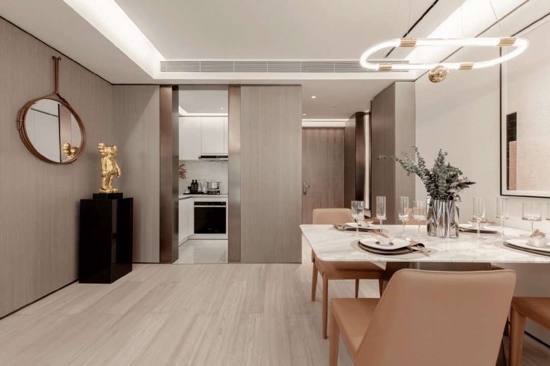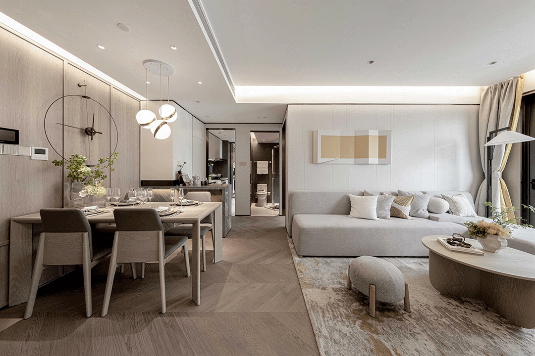 綠意在空間中迸發(fā),玄關(guān)多功能場(chǎng)景化的設(shè)置、客餐廳的寬敞舒適和臥室的超大進(jìn)深滿足了居者豐富的空間設(shè)想,進(jìn)階高端生活享受。