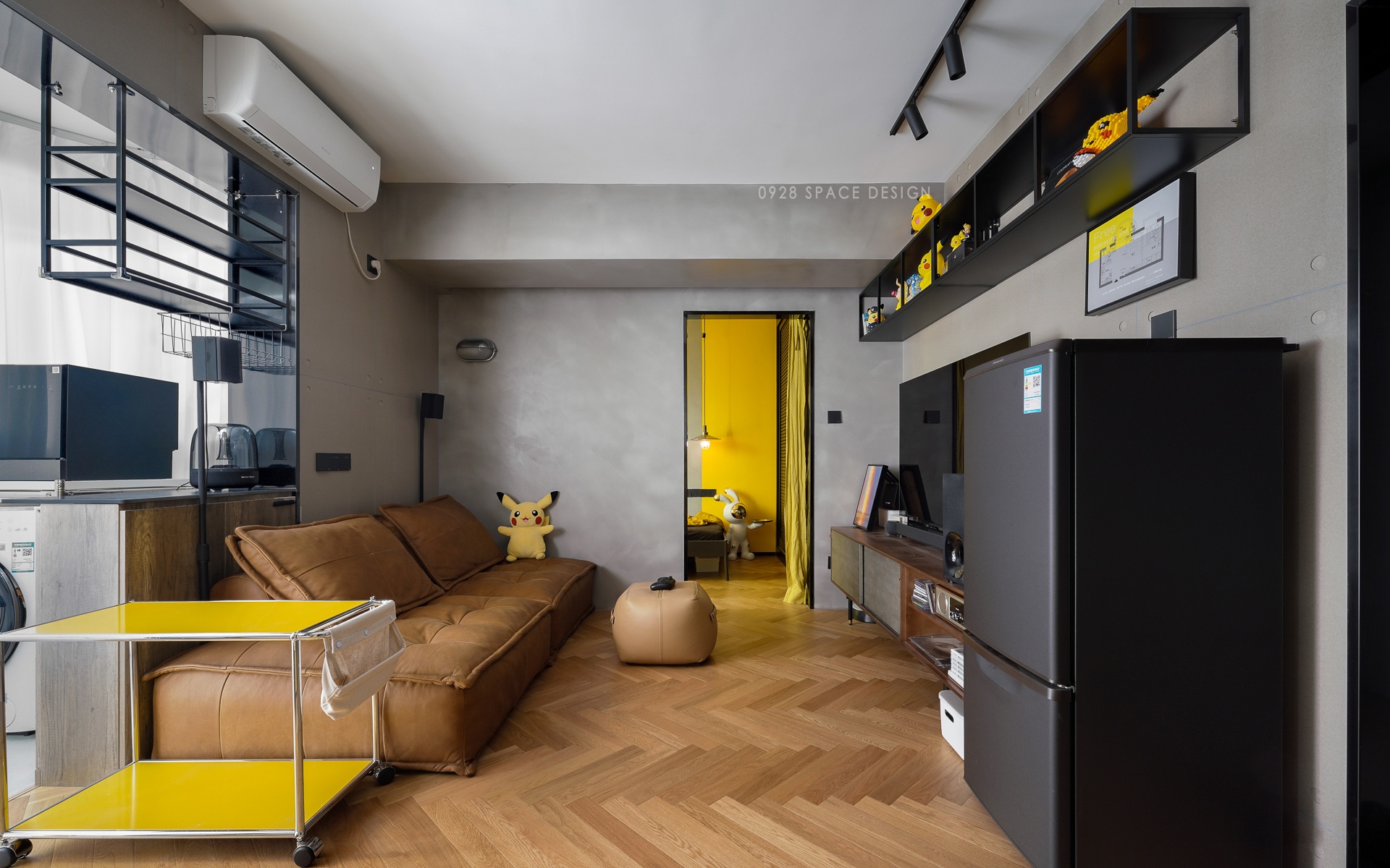業(yè)主是一個(gè)有趣的精致boy,開始是在網(wǎng)上看到公司作品案例找到我們,通過(guò)了解和面談,最終達(dá)成了合作?;蛟S印證了那句:無(wú)論多少歲,少年心不死。業(yè)主也不例外,沒事在家喜歡打游戲,最喜歡的是Pokémon的皮卡丘,因此設(shè)計(jì)師利用業(yè)主家有很多皮卡丘擺件這一特點(diǎn),合理運(yùn)用黃色、灰色和黑色,在工業(yè)風(fēng)的基礎(chǔ)上加入了一些趣味性,讓整個(gè)空間硬朗中多了一絲俏皮感。