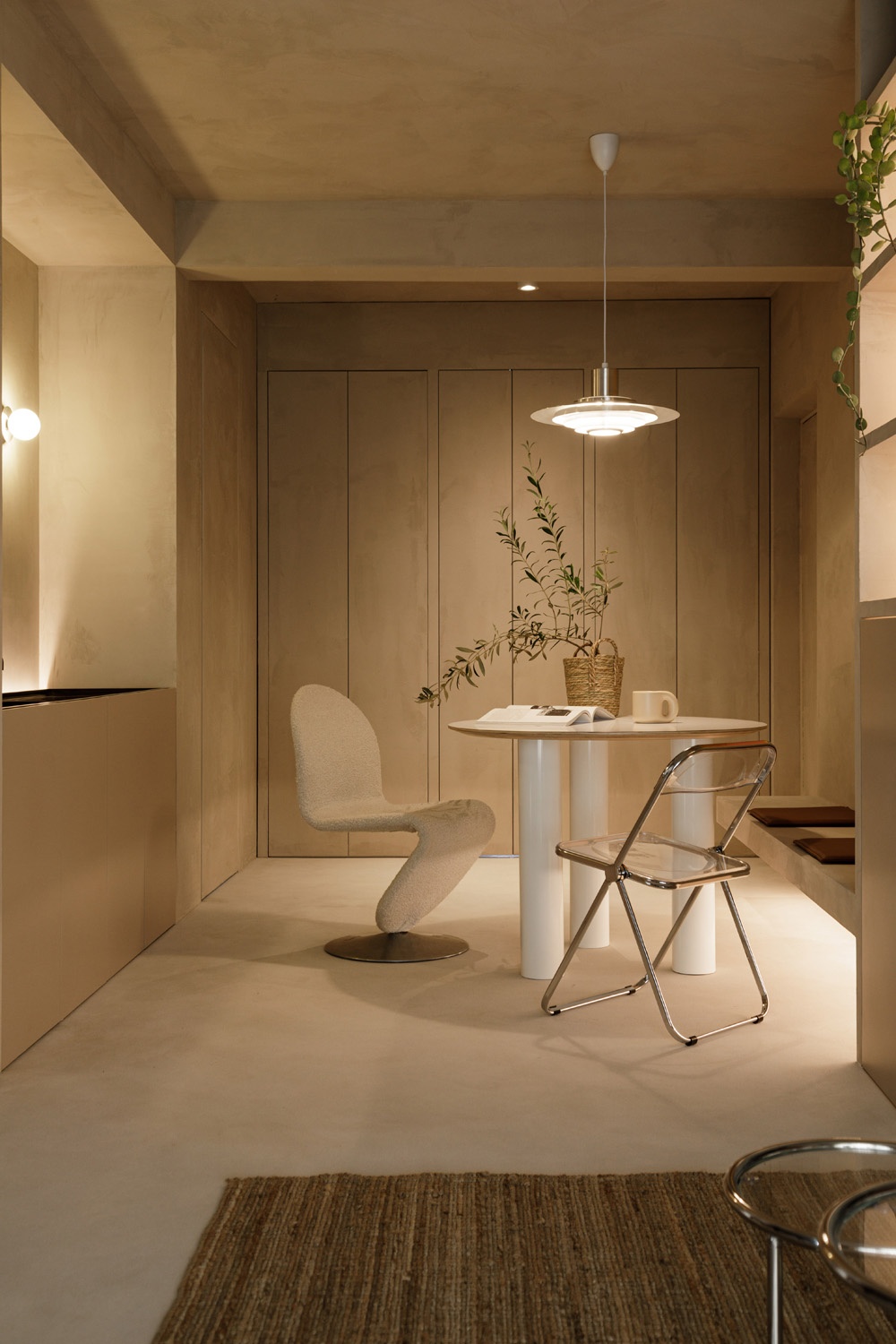 設計的時候希望營造出一種自然舒適的氛圍,比如通過粘土的顏色,藤編家具,溫暖的色調去呈現(xiàn)這種氛圍,結果一不小心就裝成了現(xiàn)在正熱門的侘寂風,所以干脆就當這是套是侘寂風的家吧哈哈