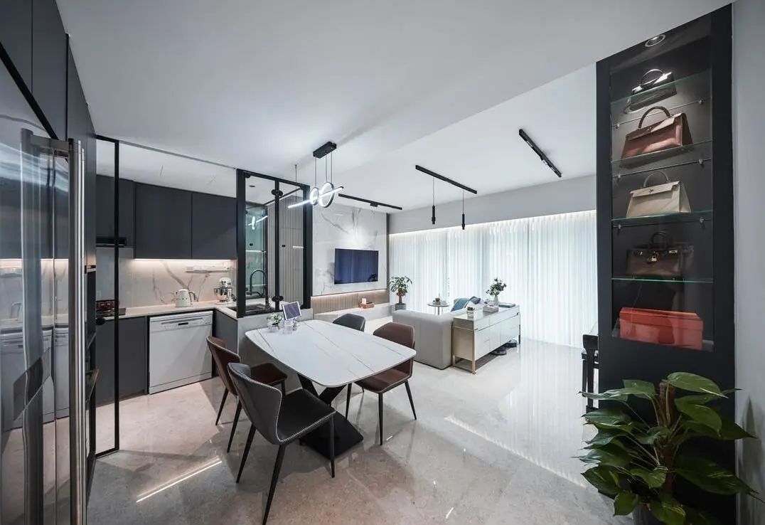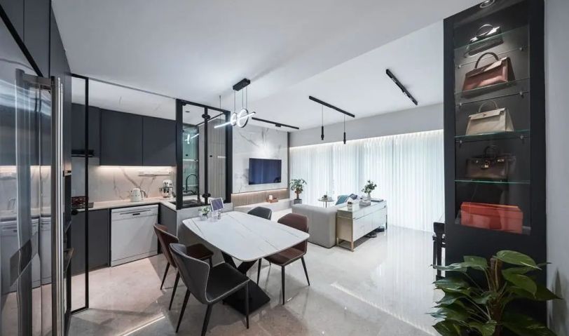 餐廳的位置是介于廚房和客廳之間的,縮短了兩個(gè)空間的動(dòng)線,這對(duì)于很多家庭來(lái)說(shuō)是再好不過(guò)的了,可不僅僅是少走兩步的實(shí)用性,懂生活的人都能理解。