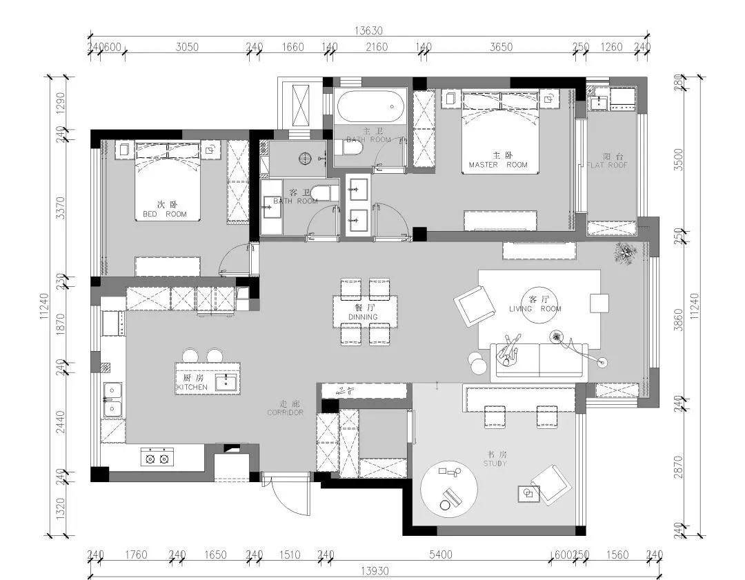 開放式廚房,整體空間視覺上更加寬敞。廚房由兩個(gè)小空間合并而成,兩扇超大的窗戶極大的提升采光,一掃對廚房潮濕、油煙的印象,在家一樣可以整潔、優(yōu)雅地做飯。