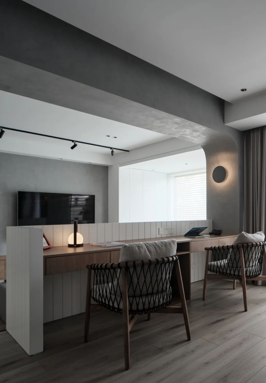 書房可拓展性非常強(qiáng),我們保留了它與其他空間的關(guān)聯(lián)性,將地面整體抬高,用于明確空間的界限。