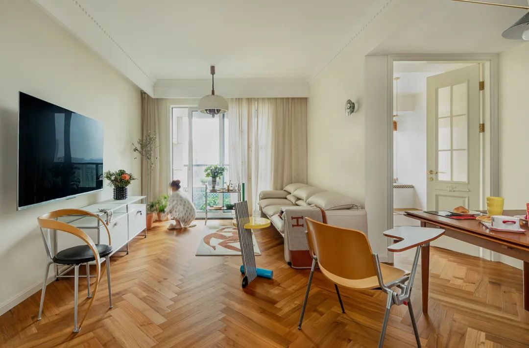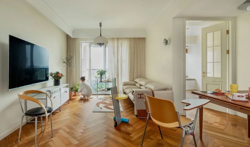 打開家門,暖意拂面而來??筒蛷d完全敞開,相對(duì)于大戶型,小戶型其實(shí)更需要空間感。