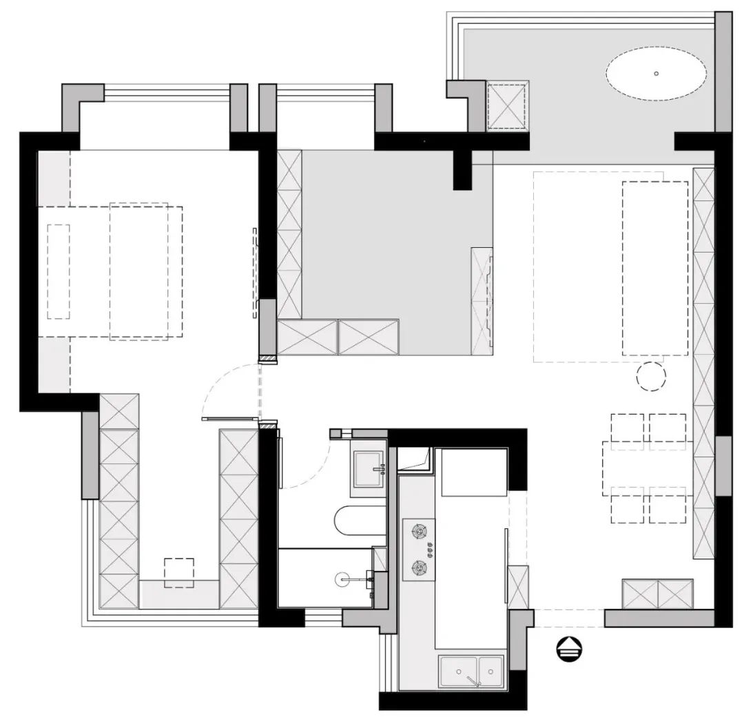 1. 小戶型收納尤為重要,用柜體取代隔墻,劃分不同功能區(qū)。