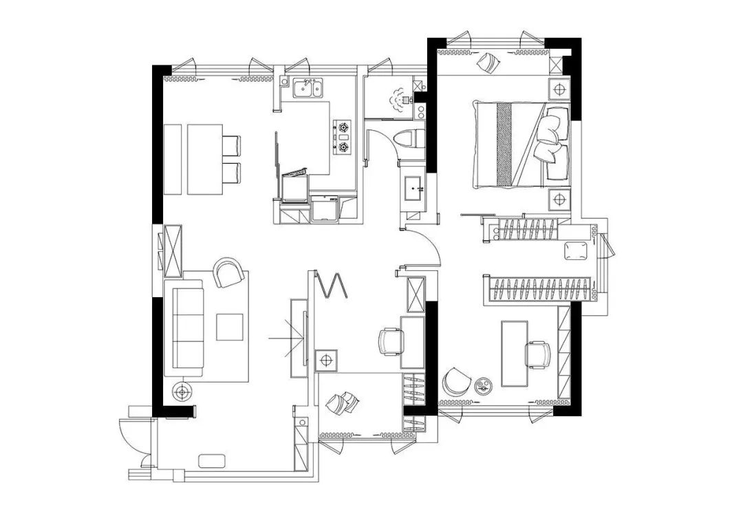 案例名稱 90平兩居婚房裝修 戶型 兩居室 案例面積 90㎡