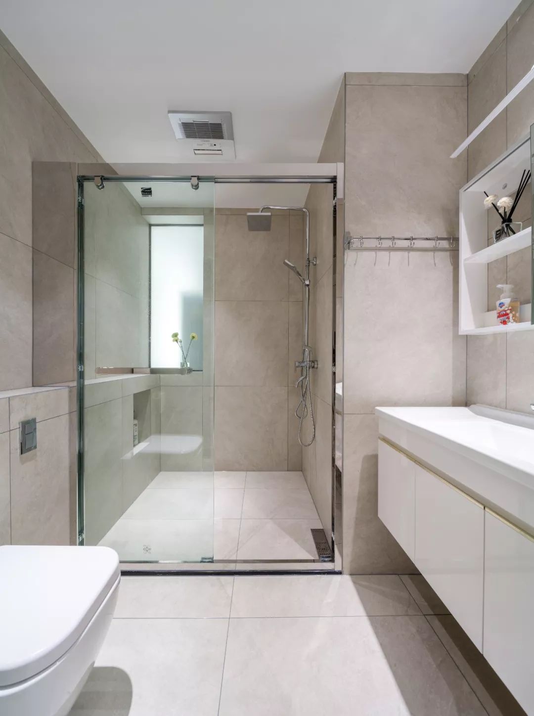 干濕分離的衛(wèi)生間,既保持了干區(qū)的干燥度,也讓使用更加方便。濕區(qū)的壁龕,方便了沐浴用品的存放和使用。