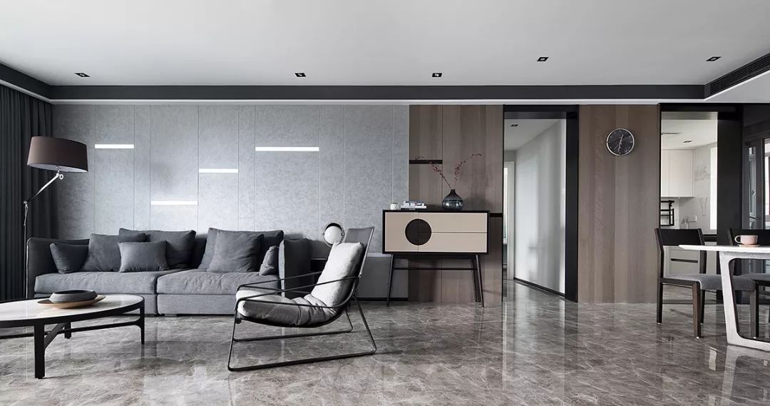 2、餐廳開(kāi)間比之客廳較小,客餐比例不協(xié)調(diào),設(shè)計(jì)師將餐廳面積擴(kuò)大,以屏風(fēng)造型隔出備餐區(qū),功能更加齊全;