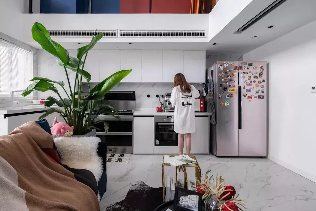 客廳側(cè)面的L型廚房功能齊全,女主人的廚藝在這里可以盡情的施展開(kāi)。冰箱貼是旅游的時(shí)候帶加回來(lái)的,都是有故事里面的。