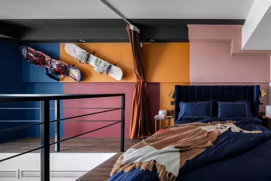 業(yè)主平時(shí)很喜歡滑雪,她說(shuō)滑雪是她生命里不能缺少的部分,于是這面墻就留給了她寶貝的滑雪板們,掛起來(lái)展示真的很酷。