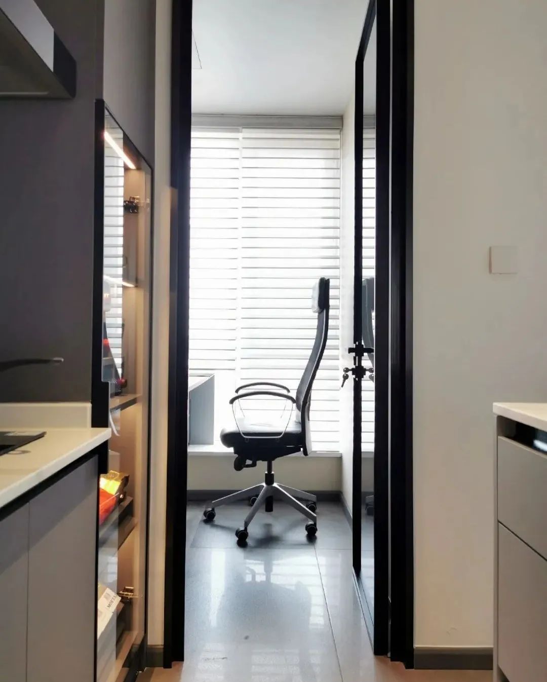 5. 縮短了廚房的長(zhǎng)度,增加一個(gè)小小的房間,作為書房,滿足屋主打游戲的需求,私密小空間,特別舒服