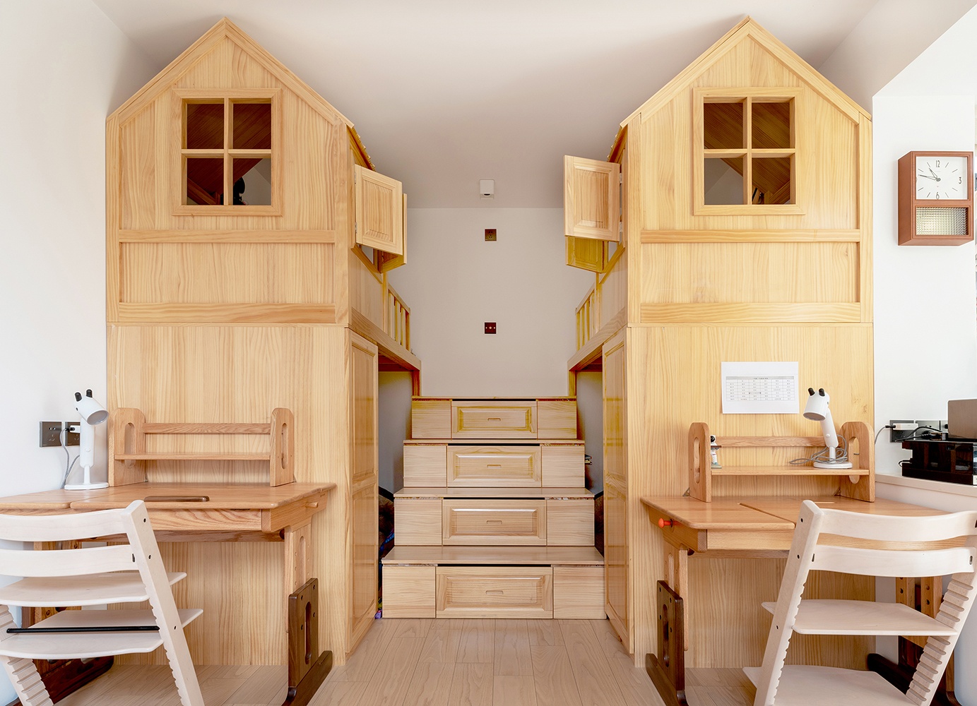 兒童房同時(shí)也是公共區(qū)域,考慮到有小孩,全屋定制都采用了實(shí)木定制。大面積的留白保證屋內(nèi)的采光不受影響,讓小空間看起來更加干凈清爽。