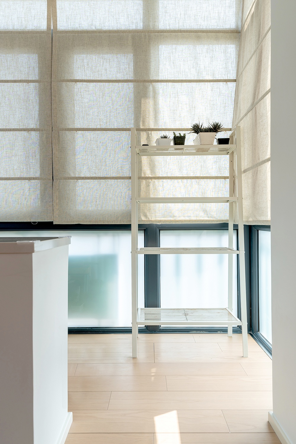 陽臺(tái)被一分為二,左邊區(qū)域有垛子作為晾曬區(qū),衣服部分被遮擋減少雜亂。右邊則是女主精心照亮綠植的地方。實(shí)用+治愈兩不誤。