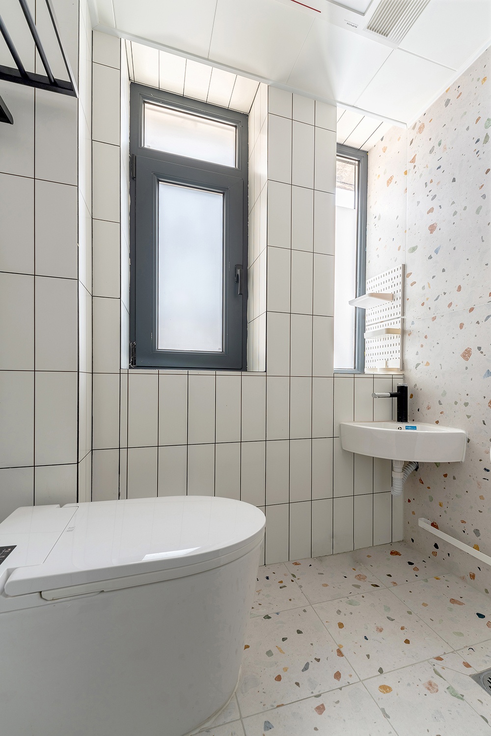 原衛(wèi)生間只有1㎡,格局外擴(kuò)改造后,面積達(dá)到了1.7㎡。考慮到家里的兩個(gè)小朋友,還特意增加小洗手池,方便他們使用。